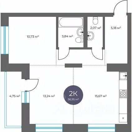 Общая площадь56,95 м2