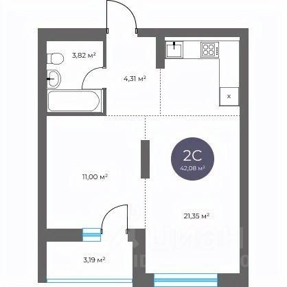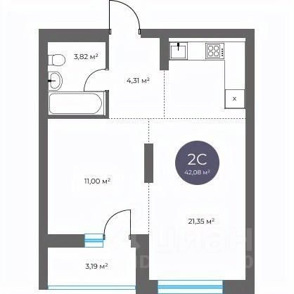 Общая площадь42,08 м2