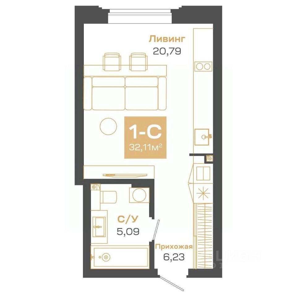 Продаётся 1-комнатная квартира в строящемся доме (Блок-секция 1), срок сдачи: II-кв. 2026, общей площадью 32.11 кв.м., на 16 этаже. Пульсар - это современный дом с развитой инфраструктурой по ул.Мусы Джалиля. Детские сады, школы, поликлиники и парки для прогулок в 5 минутной доступности.