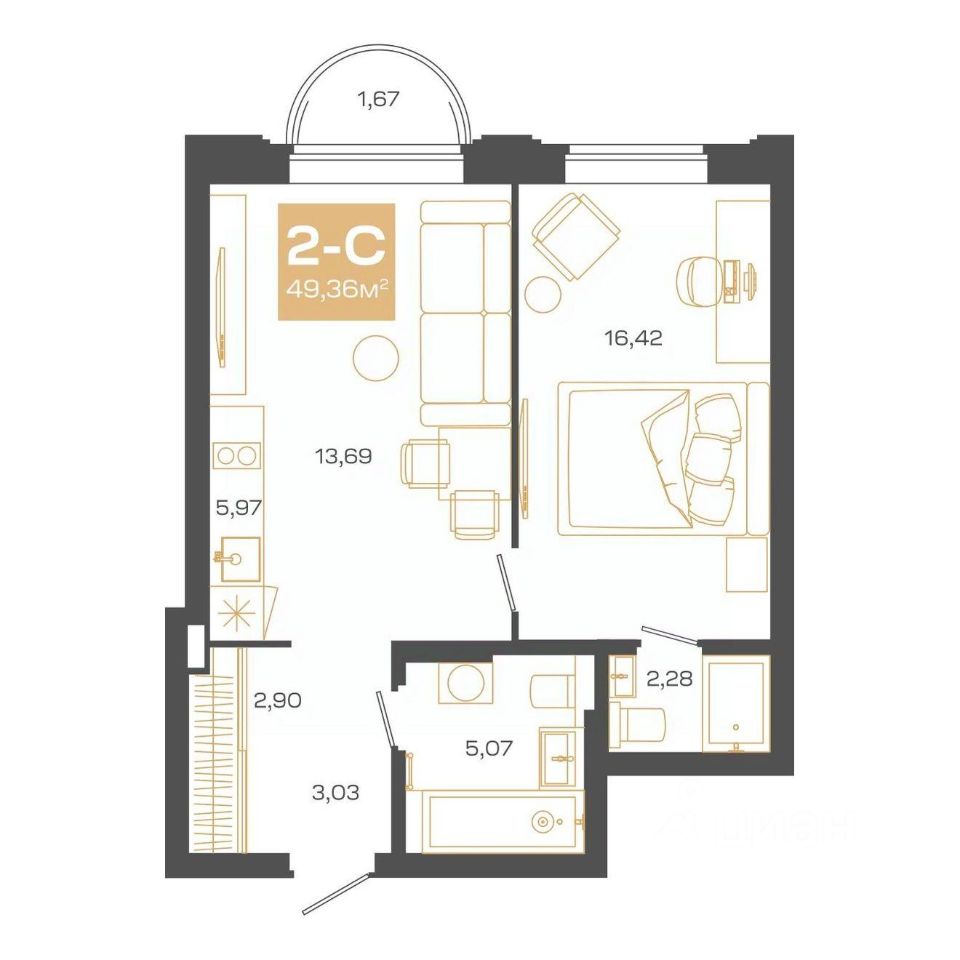 Продаётся 2-комнатная квартира в строящемся доме (Блок-секция 1), срок сдачи: II-кв. 2026, общей площадью 49.36 кв.м., на 4 этаже. Пульсар - это современный дом с развитой инфраструктурой по ул.Мусы Джалиля. Детские сады, школы, поликлиники и парки для прогулок в 5 минутной доступности.