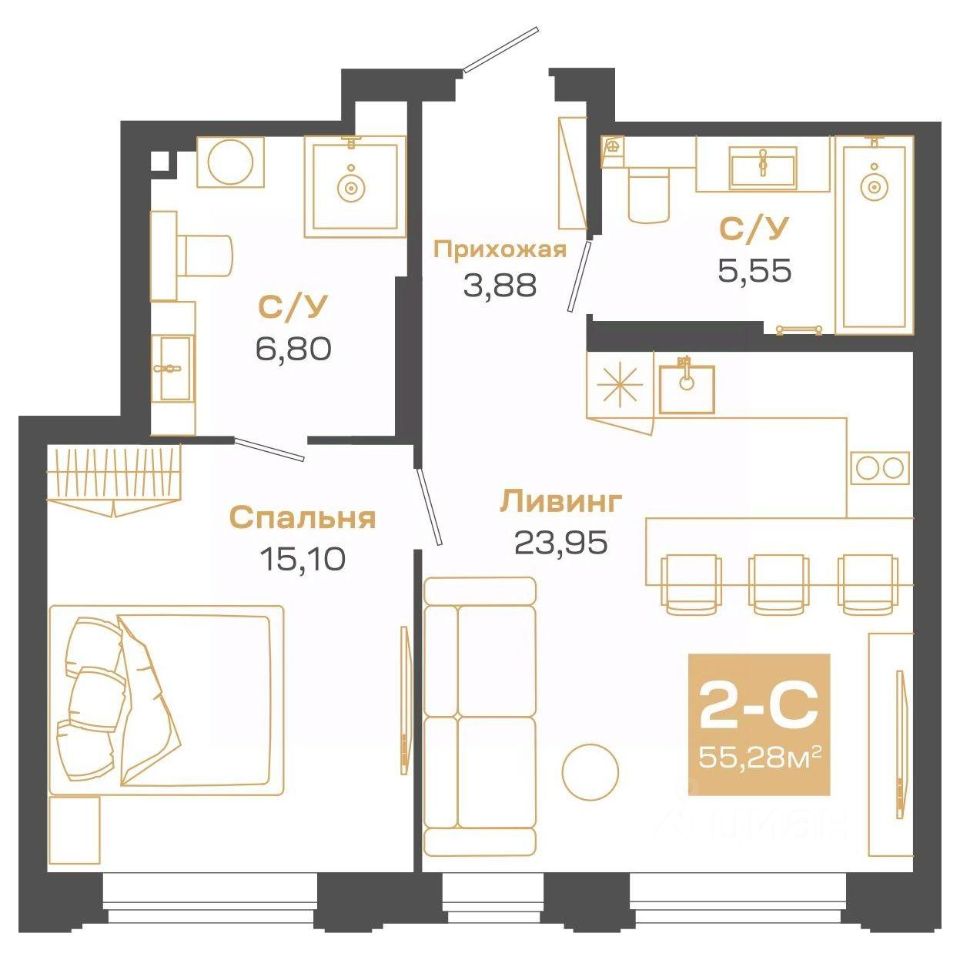Продаётся 2-комнатная квартира в строящемся доме (Блок-секция 1), срок сдачи: II-кв. 2026, общей площадью 55.28 кв.м., на 23 этаже. Пульсар - это современный дом с развитой инфраструктурой по ул.Мусы Джалиля. Детские сады, школы, поликлиники и парки для прогулок в 5 минутной доступности.