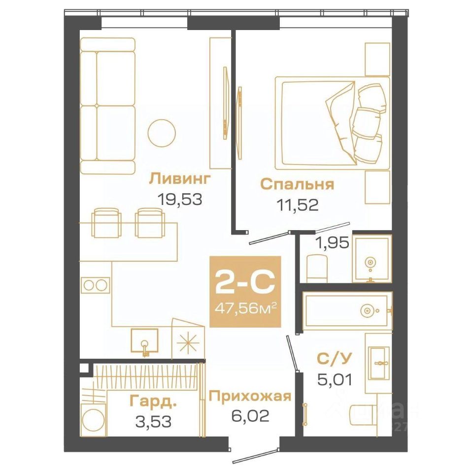 Продаётся 2-комнатная квартира в строящемся доме (Блок-секция 1), срок сдачи: II-кв. 2026, общей площадью 47.56 кв.м., на 24 этаже. Пульсар - это современный дом с развитой инфраструктурой по ул.Мусы Джалиля. Детские сады, школы, поликлиники и парки для прогулок в 5 минутной доступности.