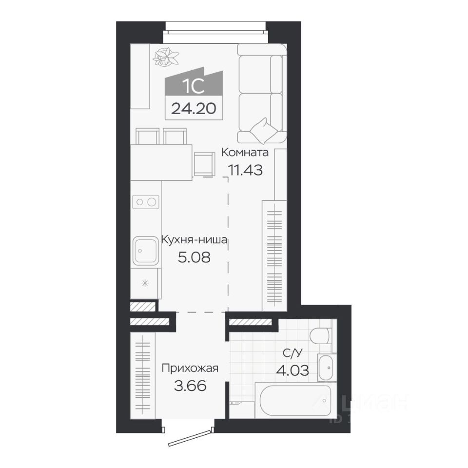 Продаётся 1-комнатная квартира в строящемся доме (Дом 3), срок сдачи: IV-кв. 2027, общей площадью 24.2 кв.м., на 7 этаже. Новый жилой комплекс ''Базилик'' от застройщика ''Группа Мета'' расположен в рп. Краснообск Новосибирской области на ул. Восточная.