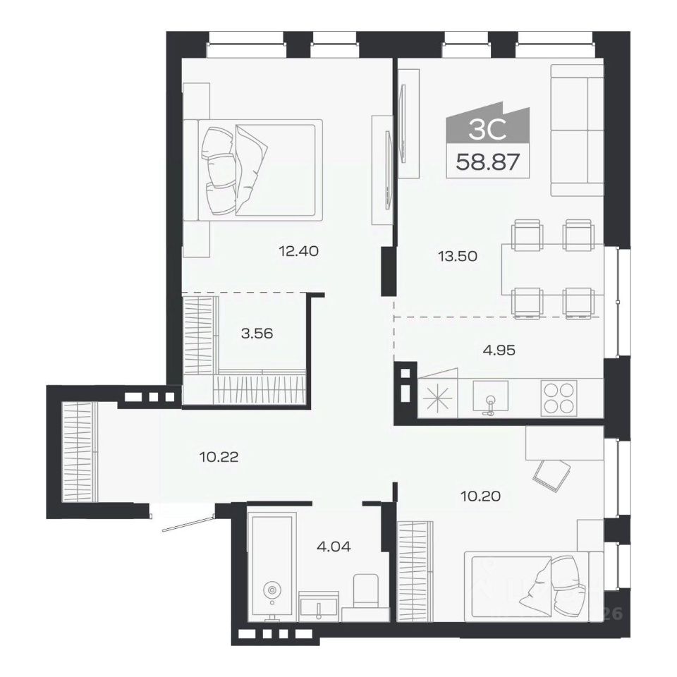 Продаётся 3-комнатная квартира в строящемся доме (Дом 2), срок сдачи: III-кв. 2026, общей площадью 58.87 кв.м., на 4 этаже. Новый жилой комплекс ''Базилик'' от застройщика ''Группа Мета'' расположен в рп. Краснообск Новосибирской области на ул. Восточная.