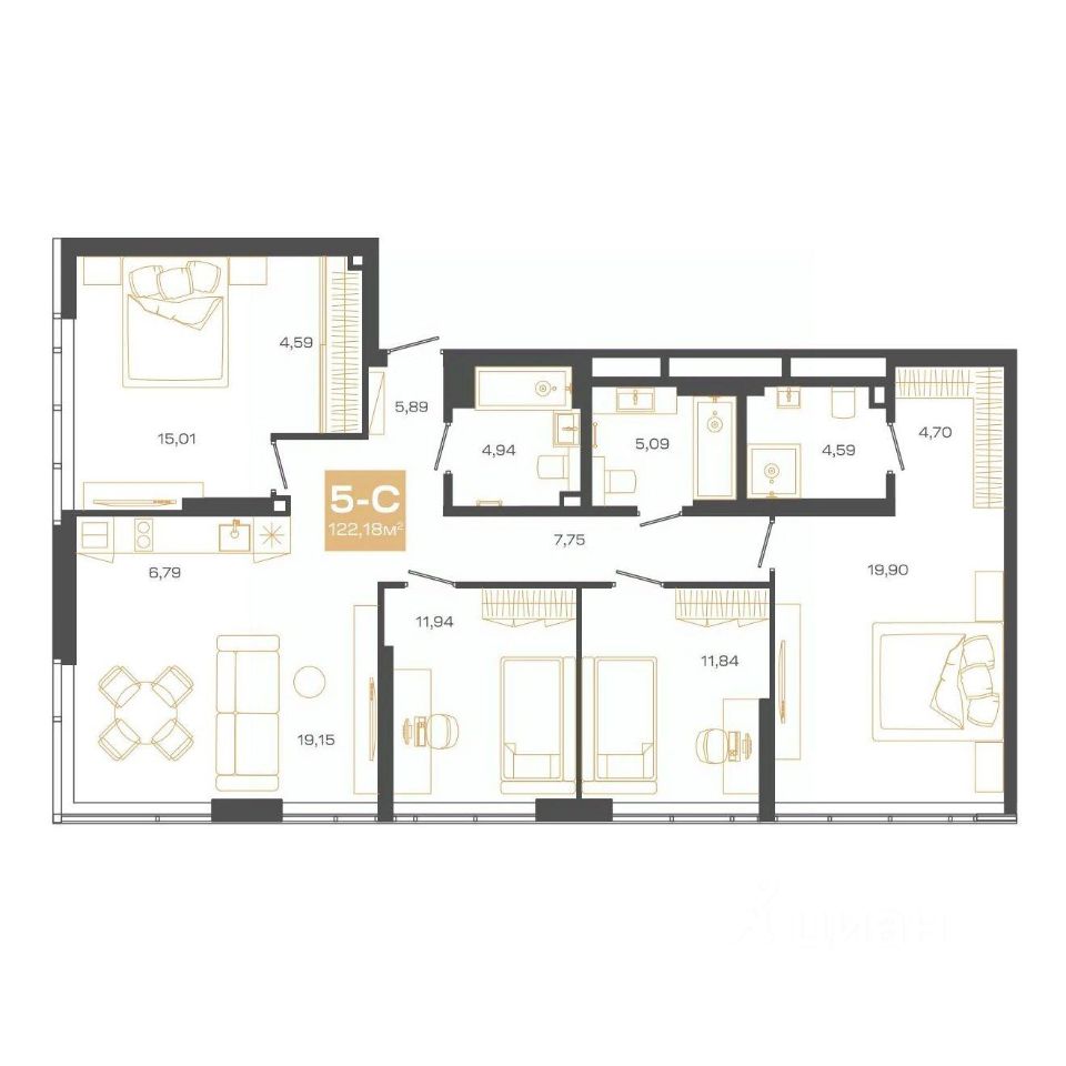 Продаётся 5-комнатная квартира в строящемся доме (Блок-секция 1), срок сдачи: II-кв. 2026, общей площадью 122.18 кв.м., на 24 этаже. Пульсар - это современный дом с развитой инфраструктурой по ул.Мусы Джалиля. Детские сады, школы, поликлиники и парки для прогулок в 5 минутной доступности.