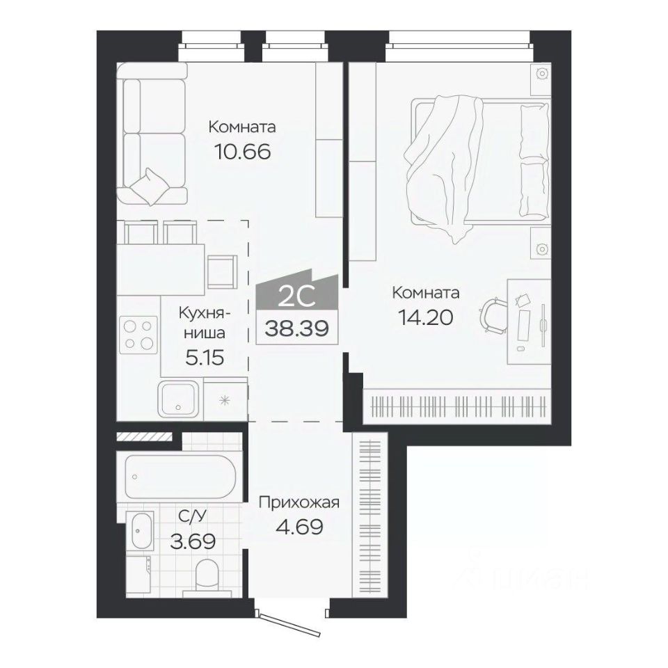 Продаётся 2-комнатная квартира в строящемся доме (Дом 3), срок сдачи: IV-кв. 2027, общей площадью 38.39 кв.м., на 6 этаже. Новый жилой комплекс ''Базилик'' от застройщика ''Группа Мета'' расположен в рп. Краснообск Новосибирской области на ул. Восточная.