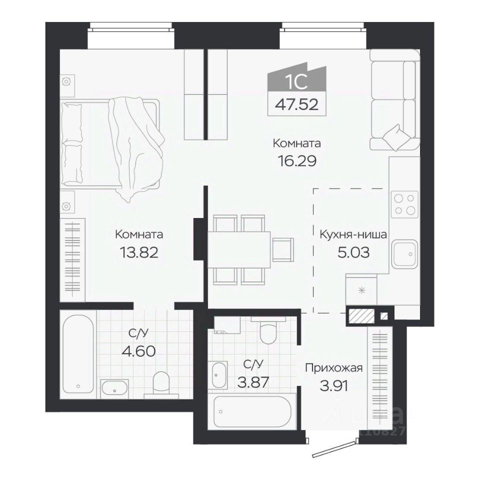 Продаётся 2-комнатная квартира в строящемся доме (Дом 3), срок сдачи: IV-кв. 2027, общей площадью 47.52 кв.м., на 1 этаже. Новый жилой комплекс ''Базилик'' от застройщика ''Группа Мета'' расположен в рп. Краснообск Новосибирской области на ул. Восточная.