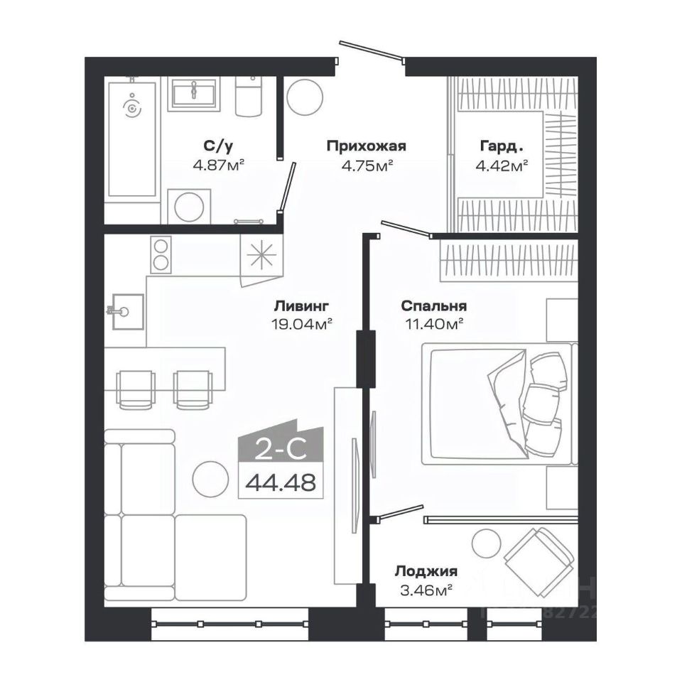 Продаётся 2-комнатная квартира в сданном доме (Дом 1), срок сдачи: III-кв. 2025, общей площадью 43.6 кв.м., на 7 этаже. Новый жилой комплекс ''Базилик'' от застройщика ''Группа Мета'' расположен в рп. Краснообск Новосибирской области на ул. Восточная.
