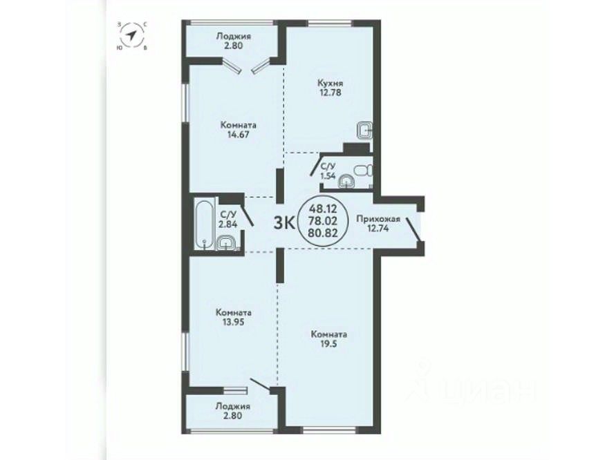 Продается 3-комн. квартира, площадью 80.82 кв.м. Жилая площадь 61.94 м2, кухня 12 кв. м, ремонта нет, комнаты изолированные. Раздельных санузлов - 1, лоджий - 1. Квартира располагается на 8 этаже 9-этажного монолитно-кирпичного дома.