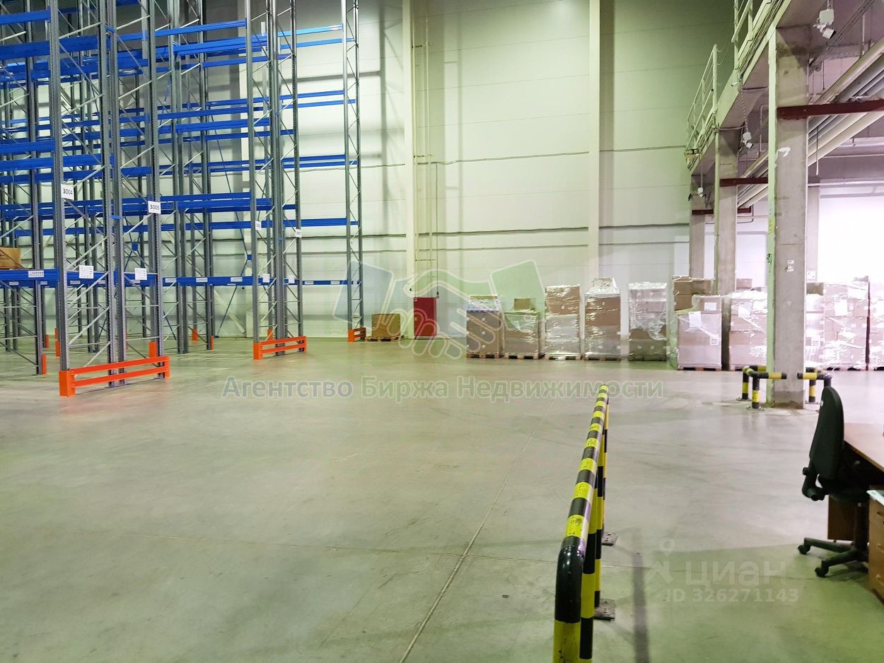 Основные параметры: • Предлагаемая к аренде площадь склада - 4350 кв.м., где: 3600 кв.м. - складская площадь первого этажа, 375 кв.м. - складская площадь мезонинного типа, на отметке 5 метров, и 375 кв.м. - офисные и бытовые помещения, санузел. Возможна аренда как меньшей, так и большей площади, от 2900 до 20300 кв.м. • Материал стен: сэндвич-панель. • Высота потолка до ферм 12 метров. • Пол бетонный, беспылевой, уровень пола расположен на отметке 1,2 метра выше уровня земли, допустимая нагрузка 7 тонн/кв.м.