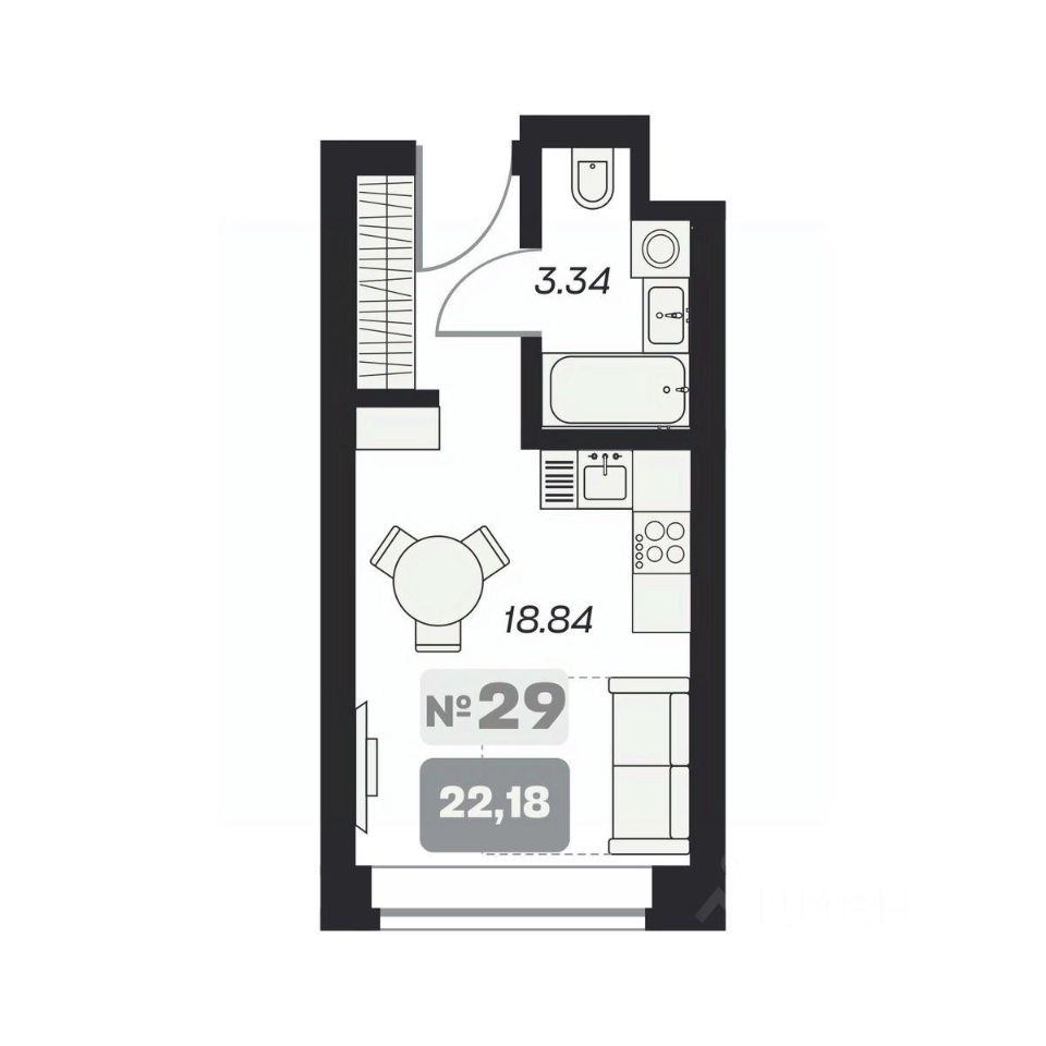 Продаётся студия-апартаменты в строящемся доме (Блоки D, Е, Е1), срок сдачи: IV-кв. 2026, общей площадью 22.18 кв.м., на 5 этаже. Апартаменты от ООО ''Специализированный застройщик ''Центр Левого берега'' расположен по адресу: г. Новосибирск, р-н Ленинский.