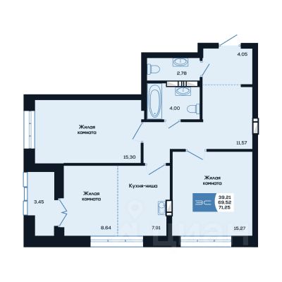 Общая площадь71,25 м2