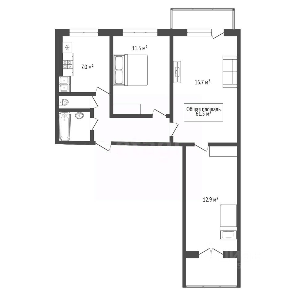 В продаже полноценная 3х-комнaтнaя квартира.