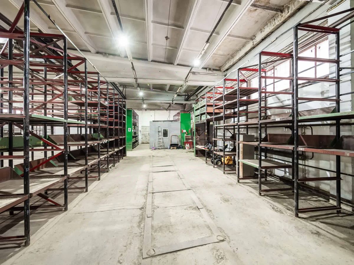 Стеллажи для хранения в помещении установлены.