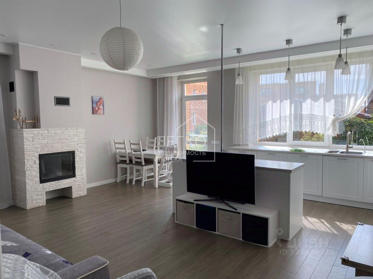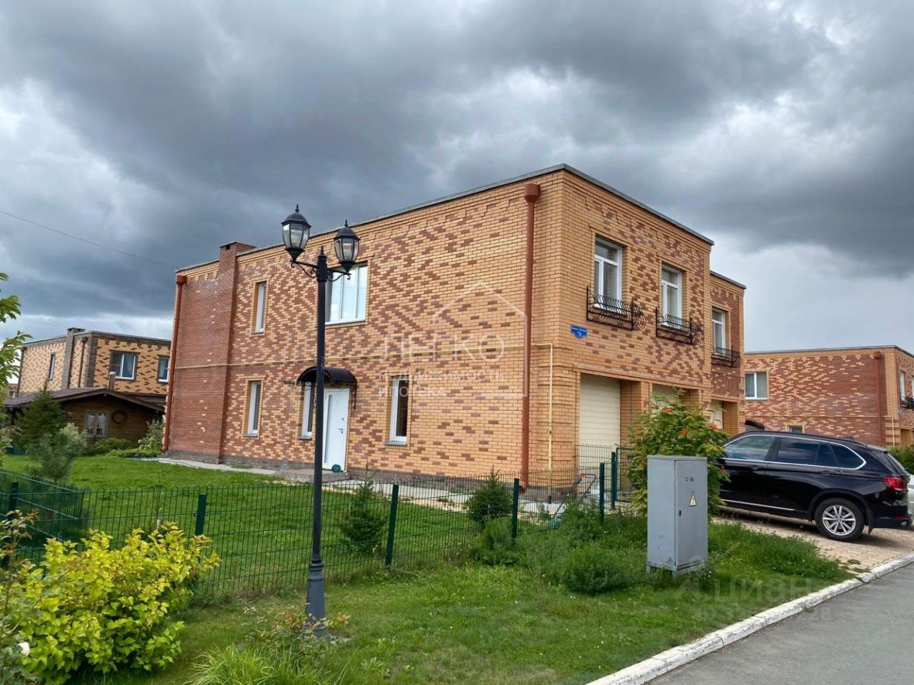 На первом этаже с/у с сауной, гостевая + кухонная зона, есть действующий камин, и теплый гараж на 2 машины, а так же есть уличная парковка на 2 машины.