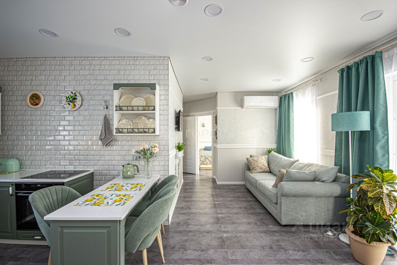 В доме выполнен дизайнерский ремонт из достойных материалов. Две уютных спальни, кабинет и кухня-гостиная оформлены очень стильно, в спокойных светлых тонах. Все продумано до мелочей. Каждый элемент интерьера в этом доме подобраны со вкусом и любовью, начиная от входа и заканчивая терассой.