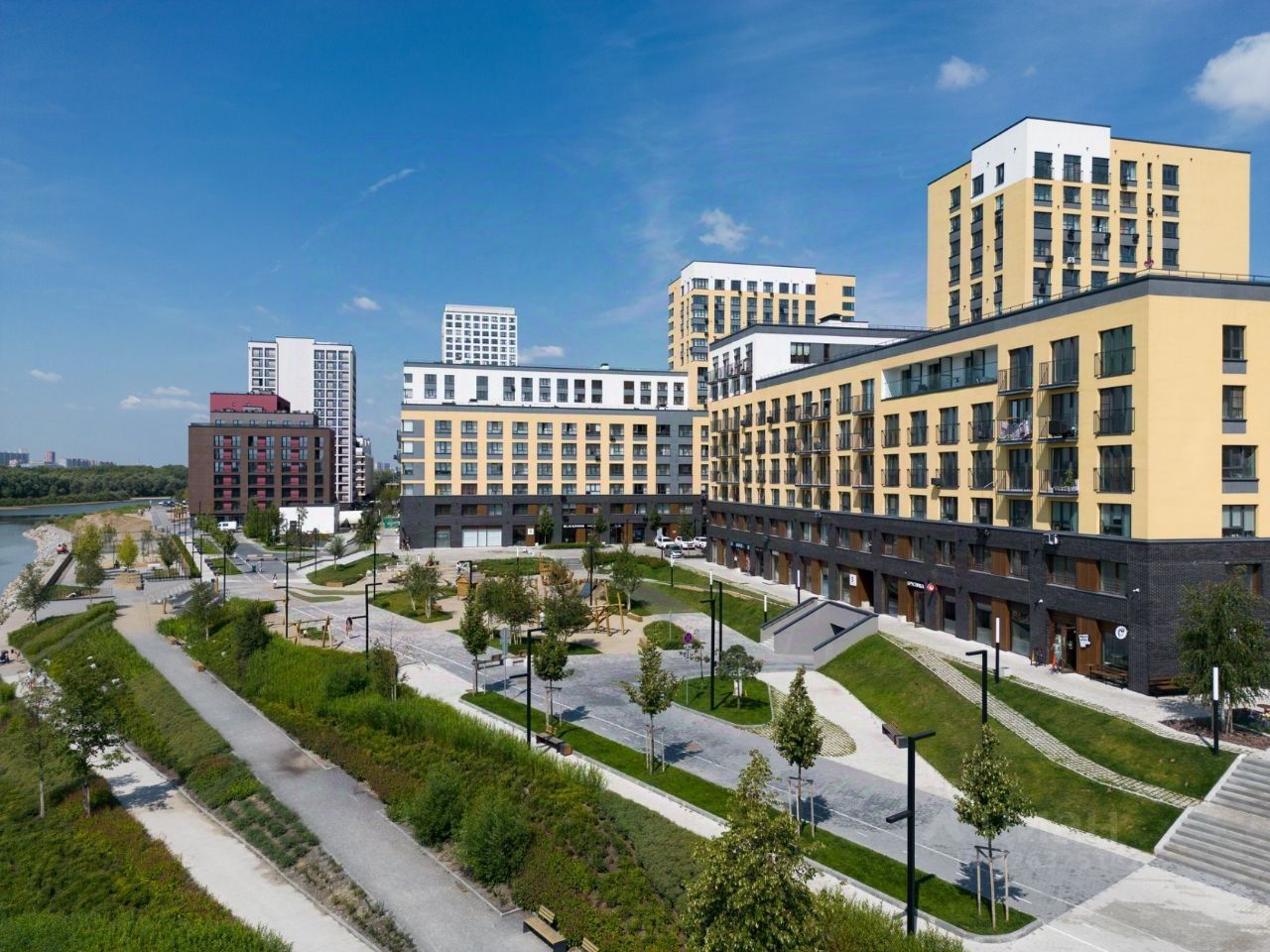 Программа благоустройства предполагает строительство двухуровневой набережной с зонами отдыха, местами для барбекю, велосипедными дорожками и бесплатным wi-fi. Управляющая компания поддерживает чистоту на территории комплекса и в подъездах, обеспечивается видеонаблюдение и профессиональная охрана.