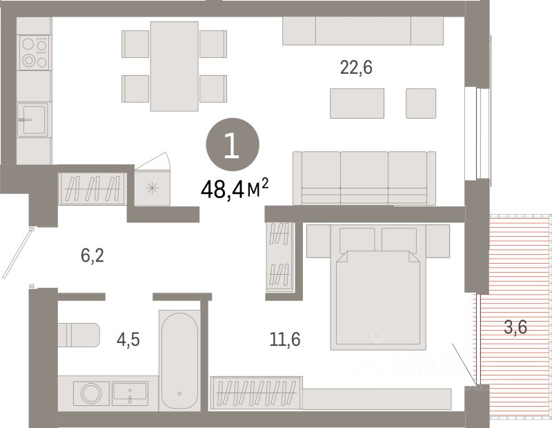 Продаётся 1-комнатная квартира в строящемся доме (Дом 46), срок сдачи: IV-кв. 2028, общей площадью 48.4 кв.м., на 4 этаже. Микрорайон ''Европейский берег'' расположен на правом берегу Оки, между Бугринским и Октябрьским мостами, в пятнадцати минутах езды от центра Новосибирска. Прямой доступ на Большевистскую улицу (магистраль Р-256 ''Чуйский тракт'') обеспечивает удобный и быстрый путь в любой район города. По трассе можно совершить путешествие через Алтай до границы с Монголией.