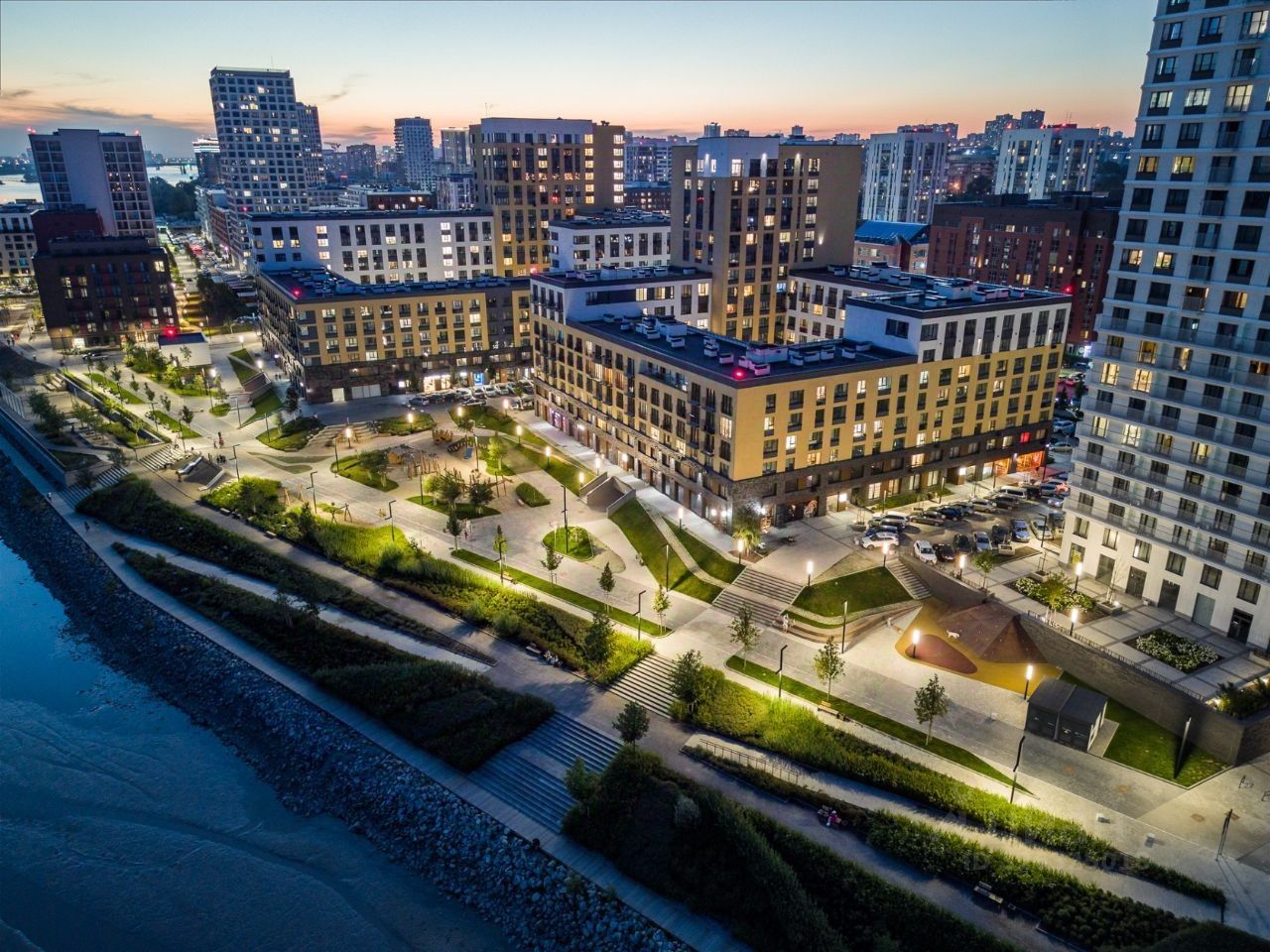 Программа благоустройства предполагает строительство двухуровневой набережной с зонами отдыха, местами для барбекю, велосипедными дорожками и бесплатным wi-fi. Управляющая компания поддерживает чистоту на территории комплекса и в подъездах, обеспечивается видеонаблюдение и профессиональная охрана.