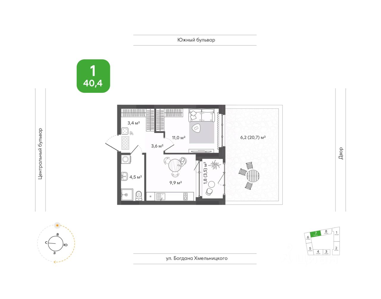 Продаётся 1-комнатная квартира в строящемся доме (Дом 1), срок сдачи: I-кв. 2028, общей площадью 40.4 кв.м., на 1 этаже. Жить в ритме природы, не теряя динамики города. В ''Сибирии'' свежий воздух встречается с динамикой города, создавая привилегию выбора: завтрак в кофейне на первом этаже дома или заряжающая пробежка в парке, культурный вечер в центре искусств или теплый семейный ужин на террасе. ''Сибирия'' становится частью нового городского кластера - с образовательной средой полного цикла, культурно-спортивным центром, медицинской инфраструктурой, современным центром искусств. Новые школы, детские сады, колледж с кампусом, новая поликлиника - все это делает жизнь комфортной и полноценной. ''Сибирия'' - это дом, где город открывает дверь в природу, а природа впускает в себя комфорт мегаполиса.