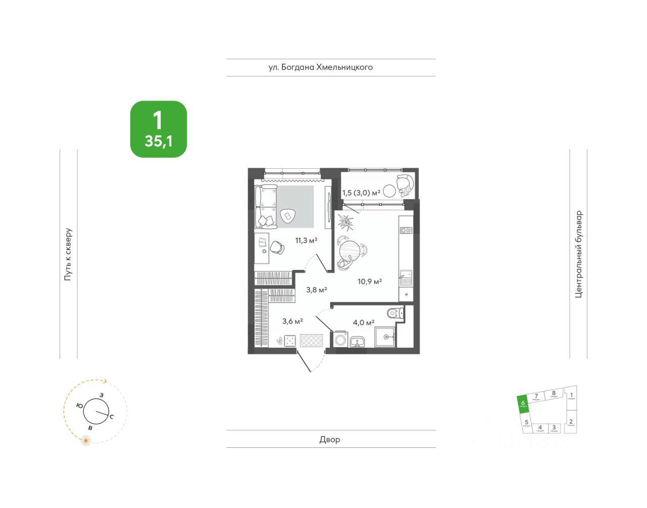 Продаётся 1-комнатная квартира в строящемся доме (Дом 1), срок сдачи: I-кв. 2028, общей площадью 35.1 кв.м., на 4 этаже. Жить в ритме природы, не теряя динамики города. В ''Сибирии'' свежий воздух встречается с динамикой города, создавая привилегию выбора: завтрак в кофейне на первом этаже дома или заряжающая пробежка в парке, культурный вечер в центре искусств или теплый семейный ужин на террасе. ''Сибирия'' становится частью нового городского кластера - с образовательной средой полного цикла, культурно-спортивным центром, медицинской инфраструктурой, современным центром искусств. Новые школы, детские сады, колледж с кампусом, новая поликлиника - все это делает жизнь комфортной и полноценной. ''Сибирия'' - это дом, где город открывает дверь в природу, а природа впускает в себя комфорт мегаполиса.