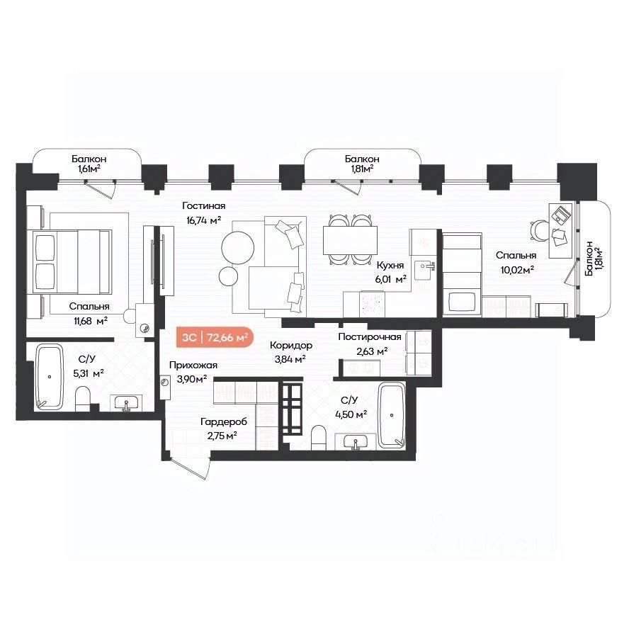 Продаётся 3-комнатная квартира в сданном доме (Дом 3), срок сдачи: IV-кв. 2025, общей площадью 69 кв.м., на 18 этаже. Жилой комплекс BALANCE от ООО СЗ Эспиви расположен в г. Новосибирск на пересечении улиц Ленинградская и Лобова.