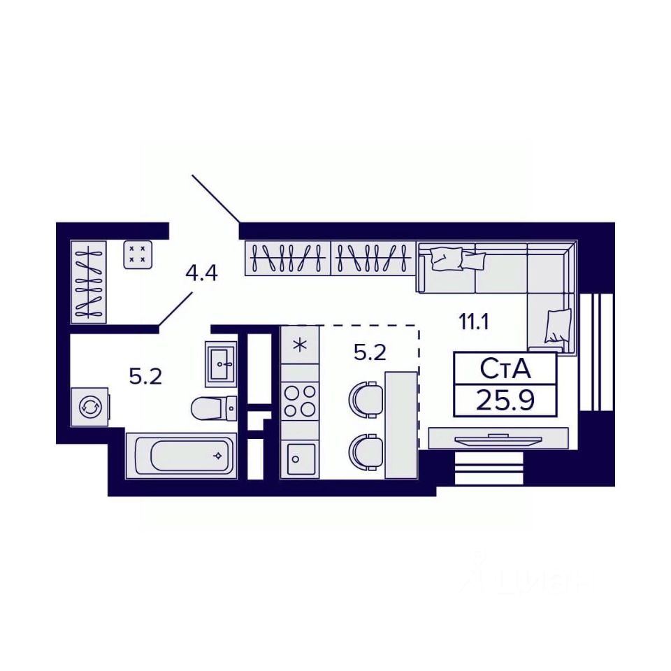 Продаётся 1-комнатная квартира в строящемся доме (Дом 1), срок сдачи: III-кв. 2026, общей площадью 25.9 кв.м., на 13 этаже. Новый жилой комплекс CITATUM (Цитатум) от компании VIRA расположен в Октябрьском районе Новосибирска на ул. Грибоедова.