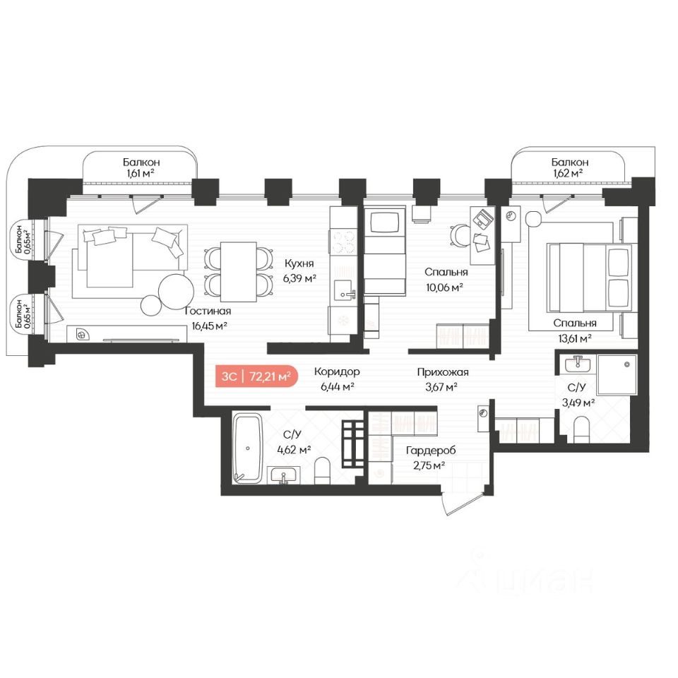 Продаётся 3-комнатная квартира в строящемся доме (Дом 3), срок сдачи: IV-кв. 2025, общей площадью 67.48 кв.м., на 14 этаже. Жилой комплекс BALANCE от ООО СЗ Эспиви расположен в г. Новосибирск на пересечении улиц Ленинградская и Лобова.