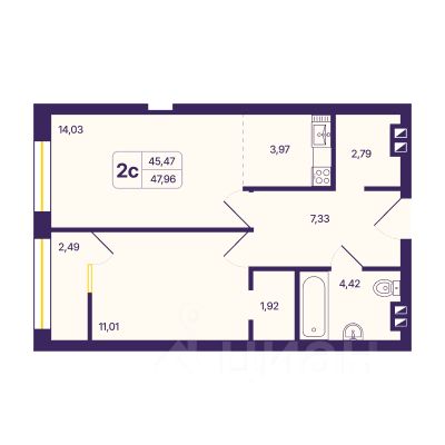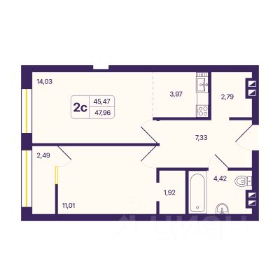 Продаётся 1-комнатная квартира в строящемся доме (ул. Аникина, 6 (1 этап, корпус 2а)), срок сдачи: IV-кв. 2026, общей площадью 46.41 кв.м., на 14 этаже. ''ШЕСТЬ ЗВЕЗД'' относится ккомфорт-классуи состоит из шести26-этажныхзданий, трех огромных подземных двухуровневых отапливаемых парковок на 300 машиномест каждая,бизнес-центра, вынесенного за пределы жилой зоны и большого парка. В комплексе представлены все востребованные на рынке типы квартир: от студий 29 кв. м до четырехкомнатных 150 кв. м. В каждом доме - пять бесшумных скоростных лифтов, два из которых опускаются на парковку. Охраняемая территория, видеоконтроль, ландшафтный дизайн, детские площадки, улучшенная отделка мест общего пользования .