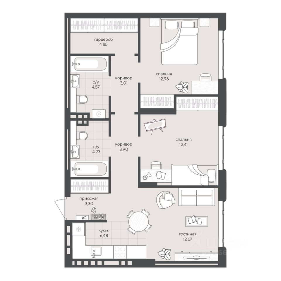 Продаётся 2-комнатная квартира в сданном доме (Дом 2 (Секция 8)), срок сдачи: IV-кв. 2025, общей площадью 67.8 кв.м., на 4 этаже. ''Скандиа. Квартал в Кедровом'' - комплекс многоквартирных многоэтажных домов переменной этажности с нежилыми помещениями, встроенным паркингом и трансформаторной подстанцией в Новосибирской области, г. Новосибирск, ул. Кедровая.