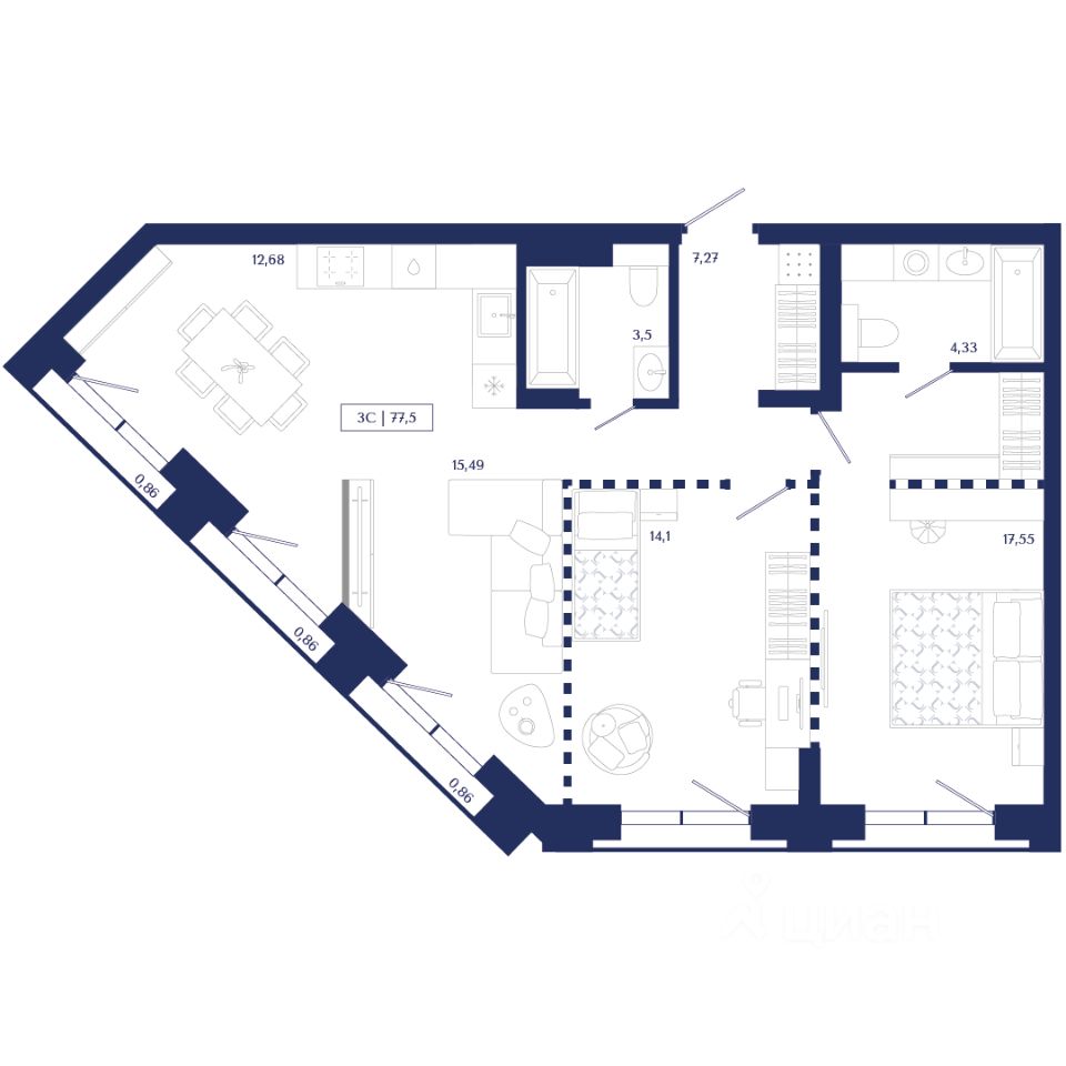 продам 3-к, Семьи Шамшиных, 1.118 690 000 ₽