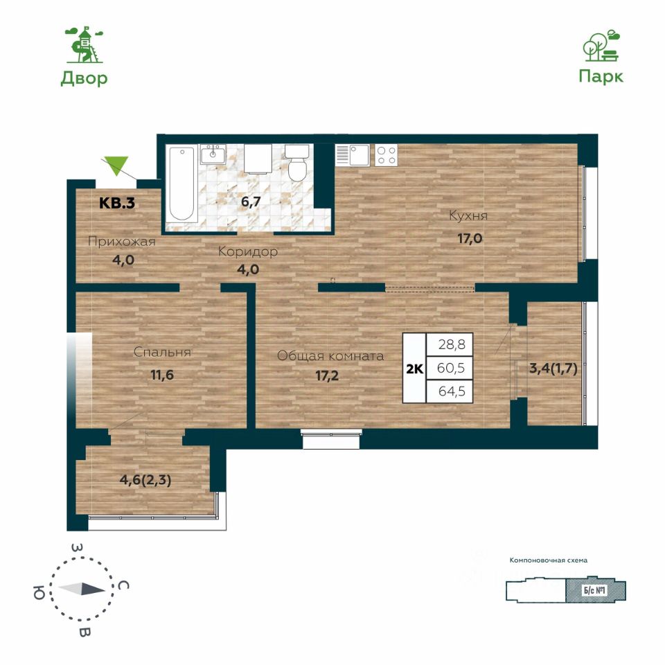Общая площадь64,5 м2