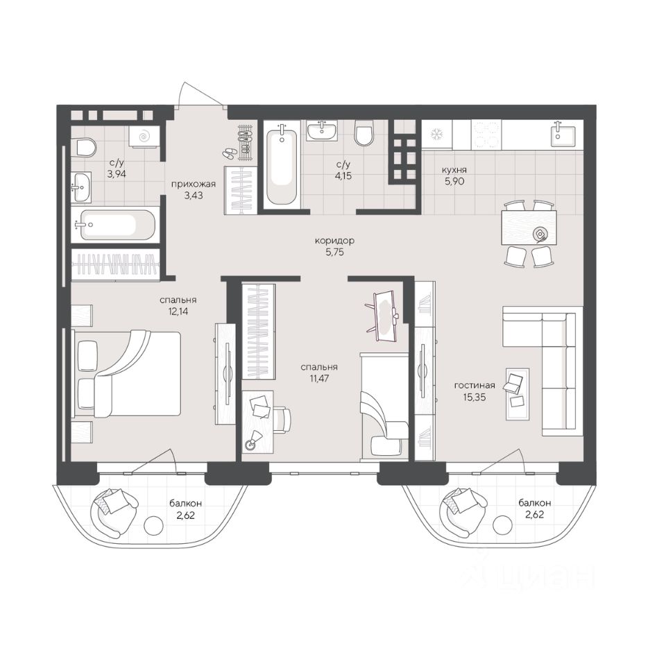 Продаётся 2-комнатная квартира в сданном доме (Дом 2 (Секция 2)), срок сдачи: IV-кв. 2025, общей площадью 67.38 кв.м., на 4 этаже. ''Скандиа. Квартал в Кедровом'' - комплекс многоквартирных многоэтажных домов переменной этажности с нежилыми помещениями, встроенным паркингом и трансформаторной подстанцией в Новосибирской области, г. Новосибирск, ул. Кедровая.