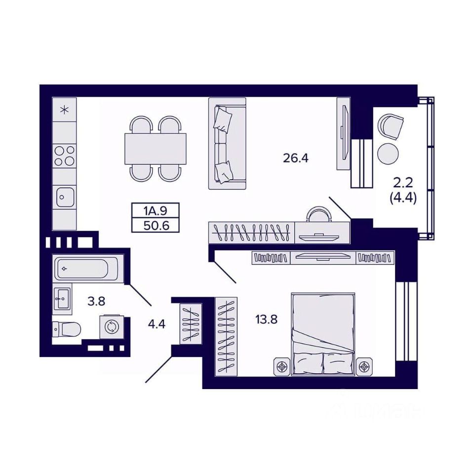 Продаётся 1-комнатная квартира в сданном доме (Дом 1), срок сдачи: IV-кв. 2025, общей площадью 50.6 кв.м., на 11 этаже. Жилой квартал ''Сподвижники'' от компании Vira.