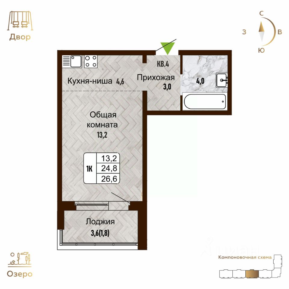 Продаётся 1-комнатная квартира в сданном доме (Рельефная, 106 (Дом 4)), срок сдачи: II-кв. 2025, общей площадью 26.6 кв.м., на 16 этаже. Жилой комплекс ''Новый горизонт'' от группы компаний ''СОЮЗ'' возводится в Ленинском районе Новосибирска в границах улиц Титова, Рельефная и Заозерная.