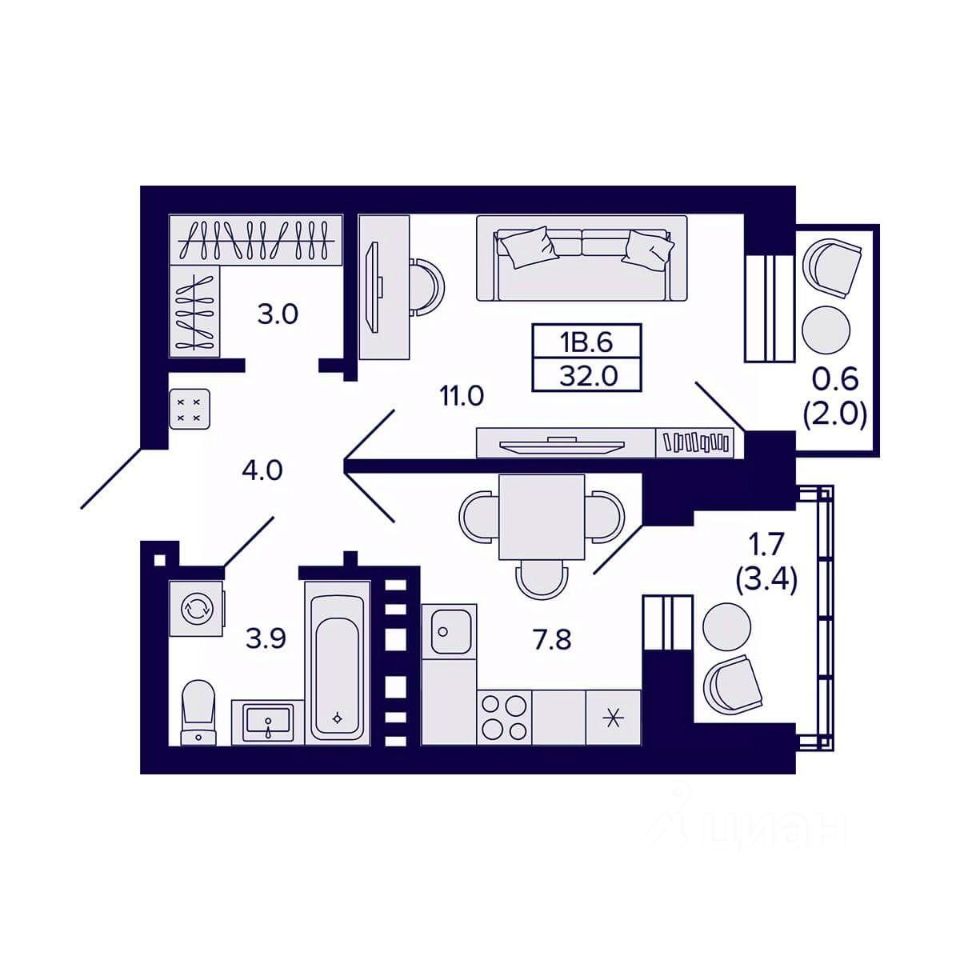 Продаётся 1-комнатная квартира в сданном доме (Дом 1), срок сдачи: IV-кв. 2025, общей площадью 32 кв.м., на 6 этаже. Жилой квартал ''Сподвижники'' от компании Vira.