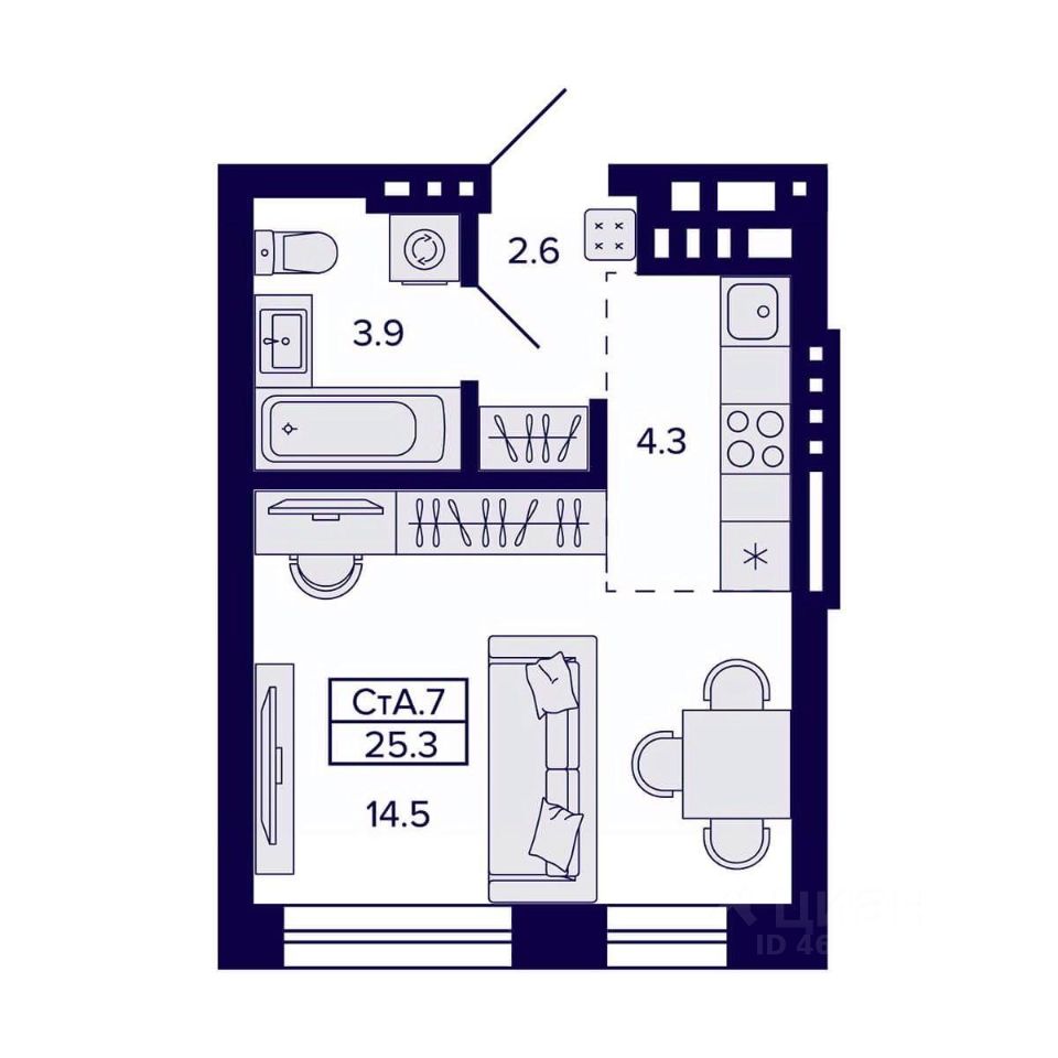 Продаётся 1-комнатная квартира в сданном доме (Дом 1), срок сдачи: IV-кв. 2025, общей площадью 25.3 кв.м., на 8 этаже. Жилой квартал ''Сподвижники'' от компании Vira.