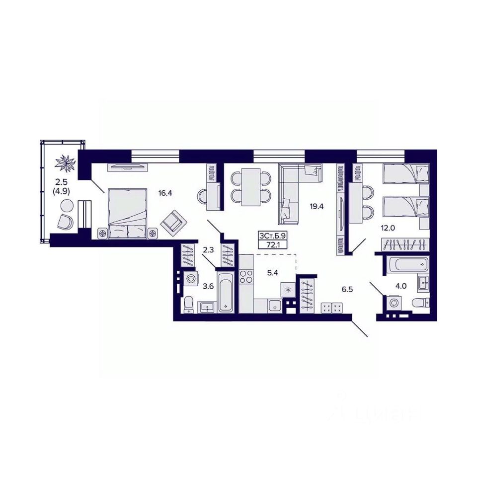 Продаётся 3-комнатная квартира в сданном доме (Дом 1), срок сдачи: IV-кв. 2025, общей площадью 72.1 кв.м., на 11 этаже. Жилой квартал ''Сподвижники'' от компании Vira.