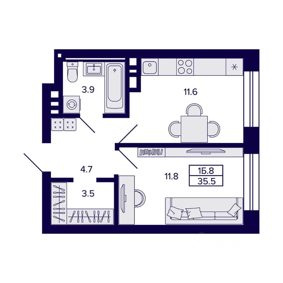 Продаётся 1-комнатная квартира в сданном доме (Дом 1), срок сдачи: IV-кв. 2025, общей площадью 35.5 кв.м., на 9 этаже. Жилой квартал ''Сподвижники'' от компании Vira.