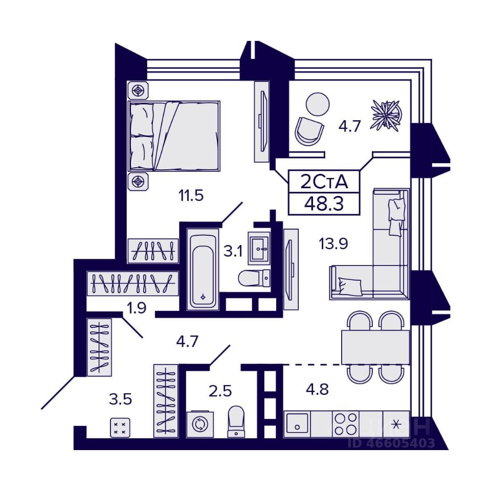 Продаётся 2-комнатная квартира в строящемся доме (Дом 1), срок сдачи: III-кв. 2026, общей площадью 48.3 кв.м., на 7 этаже. Новый жилой комплекс CITATUM (Цитатум) от компании VIRA расположен в Октябрьском районе Новосибирска на ул. Грибоедова.