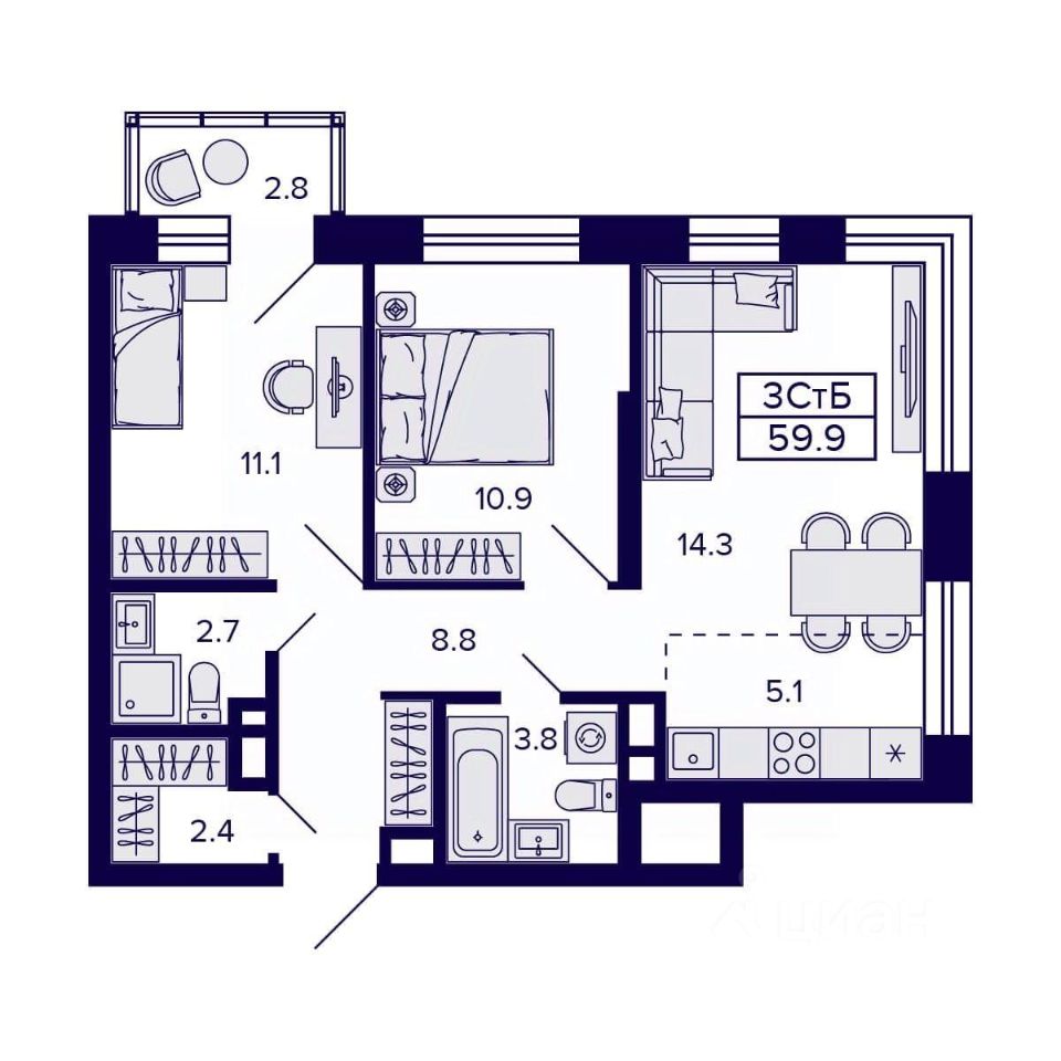 Продаётся 3-комнатная квартира в строящемся доме (Дом 1), срок сдачи: III-кв. 2026, общей площадью 59.9 кв.м., на 13 этаже. Новый жилой комплекс CITATUM (Цитатум) от компании VIRA расположен в Октябрьском районе Новосибирска на ул. Грибоедова.