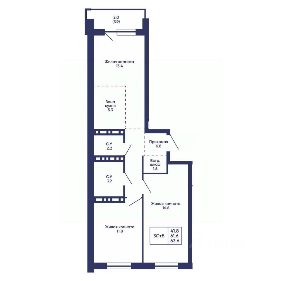 Продаётся 3-комнатная квартира в строящемся доме (Дом 3), срок сдачи: I-кв. 2028, общей площадью 63.6 кв.м., на 6 этаже. Жилой квартал ''Сподвижники'' от компании Vira.
