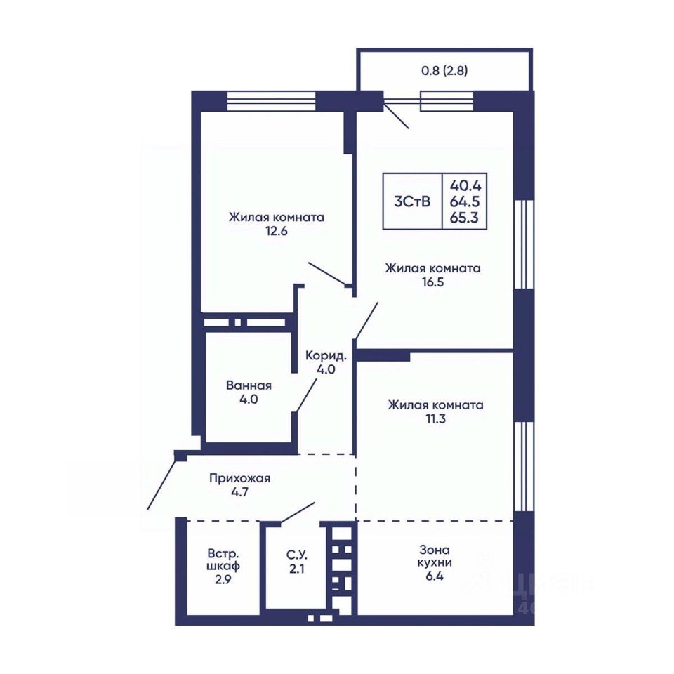 Продаётся 3-комнатная квартира в строящемся доме (Дом 2), срок сдачи: I-кв. 2028, общей площадью 65.3 кв.м., на 3 этаже. Жилой квартал ''Сподвижники'' от компании Vira.