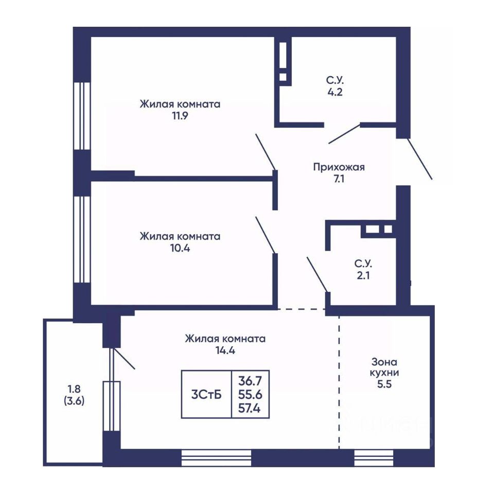 Продаётся 3-комнатная квартира в строящемся доме (Дом 3), срок сдачи: I-кв. 2028, общей площадью 57.4 кв.м., на 4 этаже. Жилой квартал ''Сподвижники'' от компании Vira.