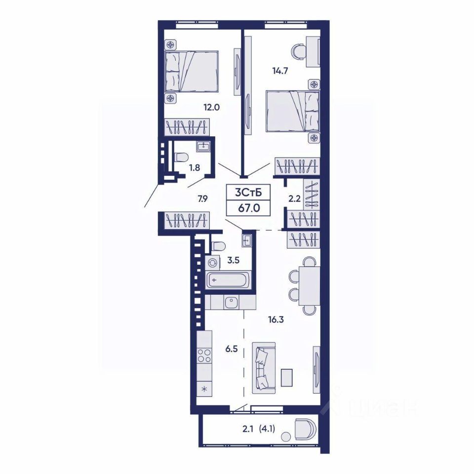 Продаётся 3-комнатная квартира в строящемся доме (Секция 6-9), срок сдачи: IV-кв. 2027, общей площадью 67 кв.м., на 3 этаже. Новый жилой дом ''На Коминтерна'' от ООО СК ''ВИРА-Строй'' расположен по адресу: г. Новосибирск, по ул. Коминтерна.