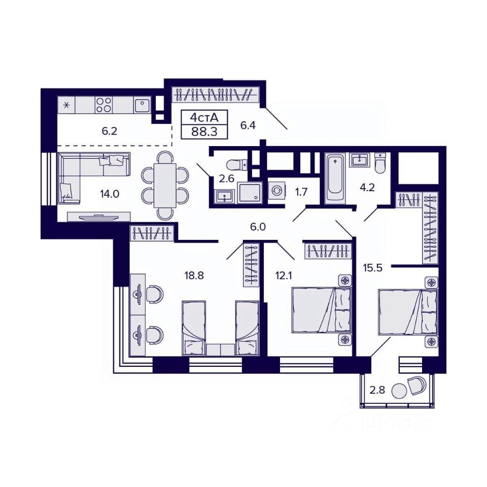 Продаётся 4-комнатная квартира в строящемся доме (Дом 1), срок сдачи: III-кв. 2026, общей площадью 88.3 кв.м., на 21 этаже. Новый жилой комплекс CITATUM (Цитатум) от компании VIRA расположен в Октябрьском районе Новосибирска на ул. Грибоедова.