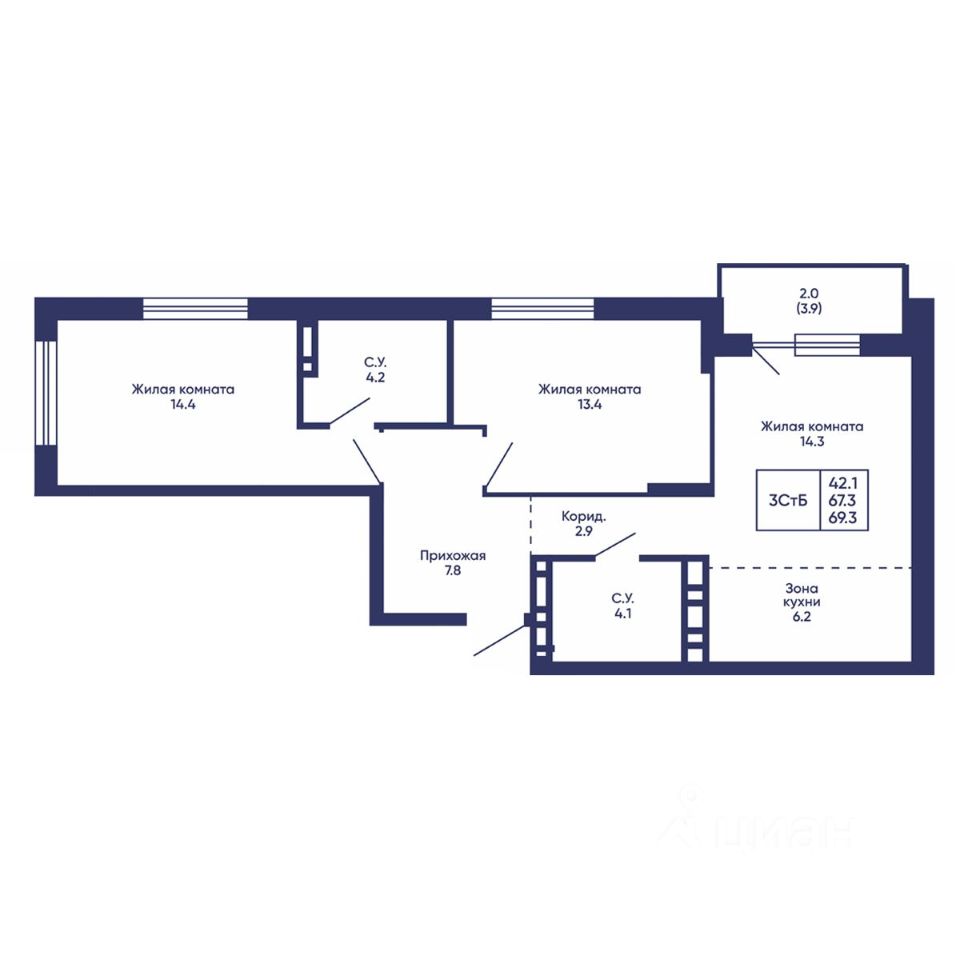 Продаётся 3-комнатная квартира в строящемся доме (Дом 3), срок сдачи: I-кв. 2028, общей площадью 69.3 кв.м., на 3 этаже. Жилой квартал ''Сподвижники'' от компании Vira.