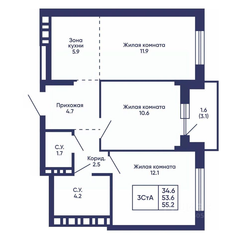 Продаётся 3-комнатная квартира в строящемся доме (Дом 3), срок сдачи: I-кв. 2028, общей площадью 55.2 кв.м., на 12 этаже. Жилой квартал ''Сподвижники'' от компании Vira.