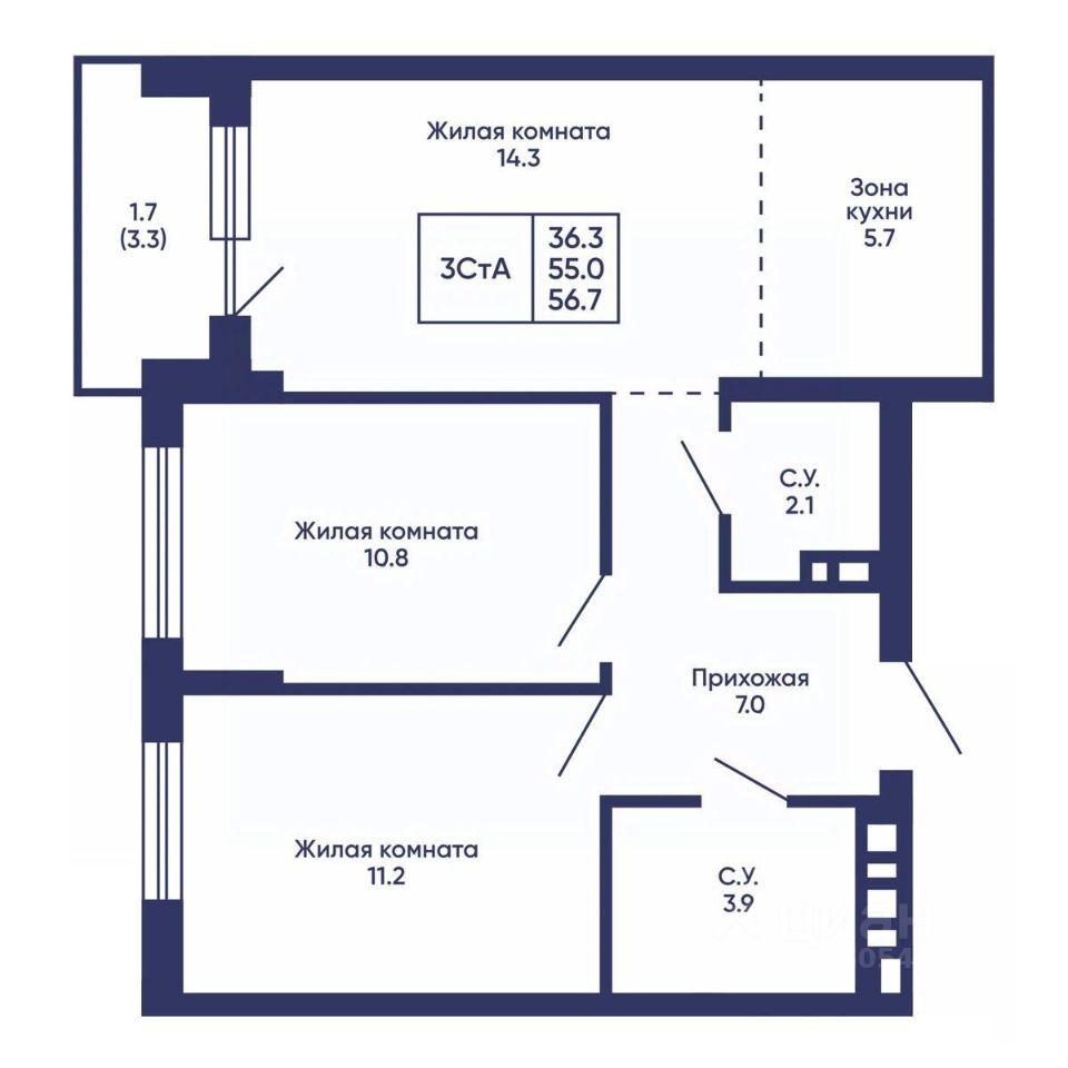Продаётся 3-комнатная квартира в строящемся доме (Дом 3), срок сдачи: I-кв. 2028, общей площадью 56.7 кв.м., на 6 этаже. Жилой квартал ''Сподвижники'' от компании Vira.