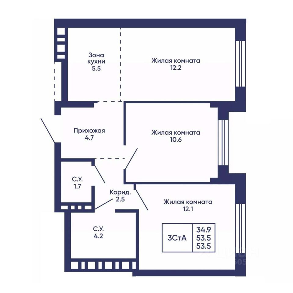 Продаётся 3-комнатная квартира в строящемся доме (Дом 3), срок сдачи: I-кв. 2028, общей площадью 53.5 кв.м., на 2 этаже. Жилой квартал ''Сподвижники'' от компании Vira.